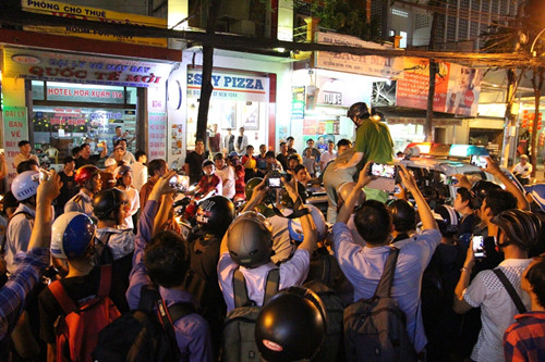 Tiếp đó, trong lúc đoàn kiểm tra đi qua đường Cống Quỳnh (P.Nguyễn Cư Trinh) thì phát hiện một ô tô đậu trên vỉa hè. Chờ không thấy chủ xe, khi lực lượng trật tự đô thị chuẩn bị niêm phong thì tài xế có dấu hiệu say xỉn từ trong nhà hàng ở gần đó lao ra tự đập liên tục vào ô tô rồi lớn tiếng, cự cãi quyết liệt.