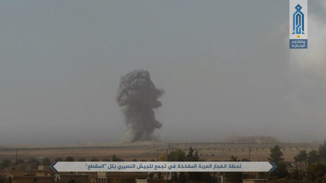 Kênh thông tin Iba'a tuyên bố QĐ Syria đã phải rút chạt khỏi ngôi làng sau khi lực lượng khủng bố tổ chức thành công một vụ tấn công bằng xe bom liều chết. Đã có một số binh sĩ chính phủ Syria bị giết hoặc bị bắt trong làng Abu Dali.