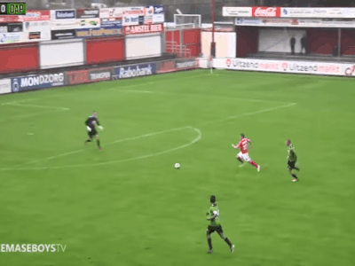 Nhận đường chuyền của đồng đội, Dennis van Duinen có pha che bóng rồi thoát đi rất nhanh tiến thẳng về phía cầu môn đội khách Capelle. Thủ thành bên phía Capelle đã lao ra phá bóng nhưng đáng tiếc bóng lại bật trúng chân Van Duinen dội ngược về phía khung thành bị bỏ trống.