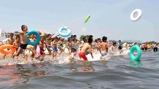 Trẻ em vui chơi tại một bãi biển ở thành phố Wonsan