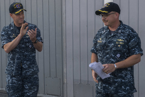 Đại tá Aycock (phải) trong lễ bàn bàn giao chức chỉ huy. Ảnh: Naval Today.
