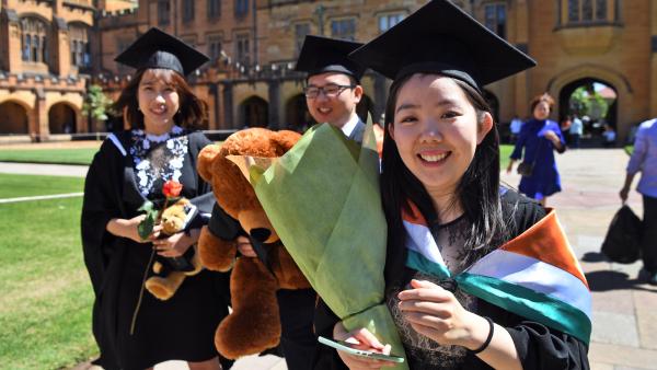 Sinh viên Trung Quốc chụp ảnh cùng gia đình tại Đại học Sydney, Úc, 12/10/2017.Ảnh : William WEST / AFP