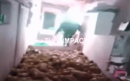 Old  Default Căm phẫn cảnh đàn ông to béo nhảy lên đàn lợn làm 79 con tử nạn