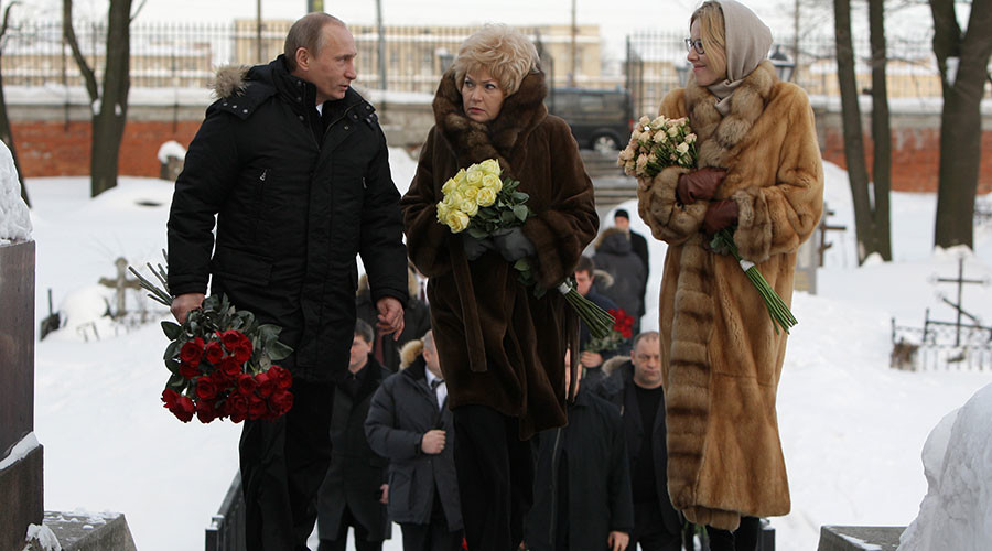 Tổng thống Nga Putin đi cùng vợ và con của cố thị trưởng Anatoly Sobchak (Ảnh: Sputnik)