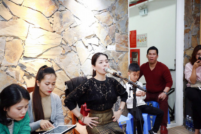 Chồng con tháp tùng Lệ Quyên đi tập hát, kiên nhẫn ngồi chờ phía sau