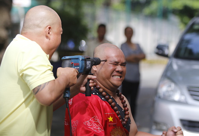 Tiếp theo đó, tiết mục dùng khoan khoan vào những vị trí nguy hiểm trên cơ thể cũng gây chú ý. Tuy nhiên, trong quá trình thực hiện, toàn bộ e-kíp đều đã quên mất phần dùng khoan khoan vào 2 con mắt mà chỉ có khoan vào cổ họng, bàn tan (hay còn gọi là thái dương) và đỉnh đầu.