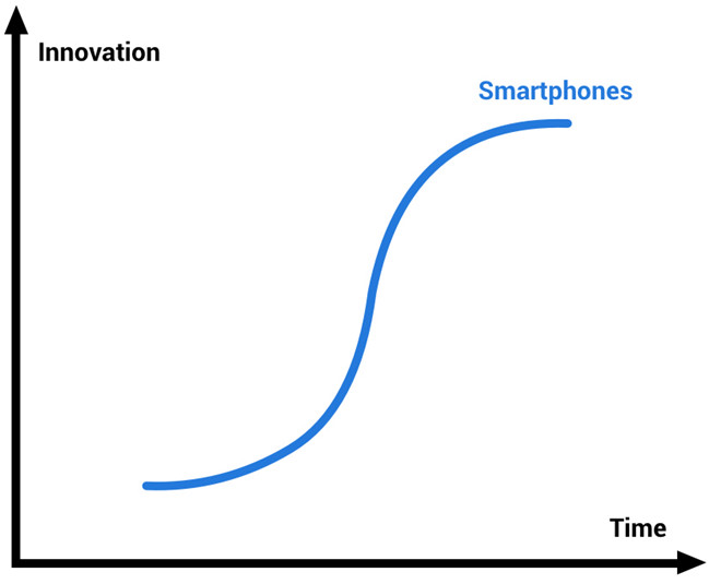 Smartphone vẫn tốt hơn, nhanh hơn, thiết kế đẹp hơn nhưng người dùng không còn quan tâm đến những cải tiến đó nữa. Đó gọi là vòng xoay công nghệ. Theo thời gian, sự sáng tạo trên smartphone dần mất đi, cùng với đó là sự hứng khởi của người dùng.