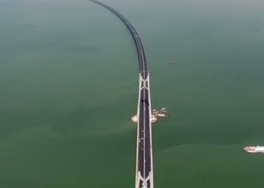 Cầu vượt biển dài 55km dài nhất thế giới đang ở giai đoạn cuối cùng. Bước quan trọng nhất là lát mặt đường hầm đang được tiến hành, bảo đảm tiến độ để cuối năm nay cầu thành sẽ hoàn thành.