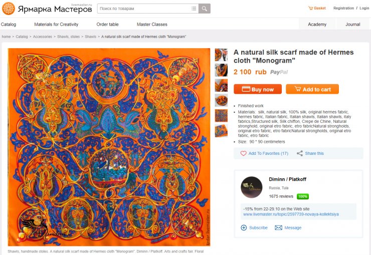 Trên một web bán hàng, chiếc khăn có họa tiết tương tự được niêm yết 872 nghìn đồng.