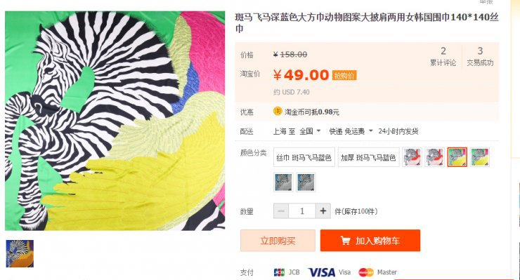 Nhìn khá giống với chiếc khăn giá 49 Nhân dân tệ (167.000 đồng) trên một website bán hàng ở Trung Quốc.