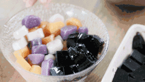 - Khoai lang thường, khoai lang tím, khoai môn, bột khoai lang, 25g bột thạch sương sáo đen