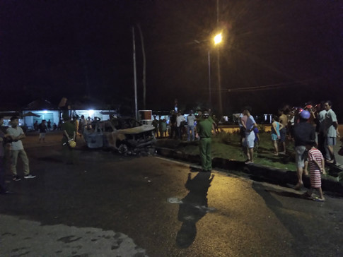 Thông tin ban đầu, trước đó, lúc 20 giờ ngày 26.10, tại ấp Xóm Mới, xã Bãi Thơm (Phú Quốc) xảy ra một vụ ô tô bán tả tông, kéo lê một mô tô khiến cả 2 xe phát cháy.
