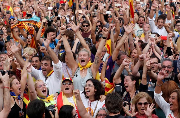 Họ hò reo, hát vang bài hát riêng của khu vực và khui champagne ăn mừng. Montserrat Rectoret (61 tuổi), nghẹn ngào nói: “Tôi thật sự rất xúc động. Catalonia đã vật lộn suốt 40 năm mới giành được độc lập và cuối cùng tôi có thể nhìn thấy điều đó”.