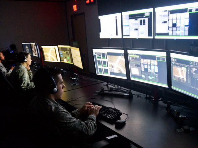 Nhân viên thuộc trung tâm tình báo hàng không và vũ trụ (NASIC) đang phân tích các dữ liệu. (Ảnh: Không quân Mỹ)