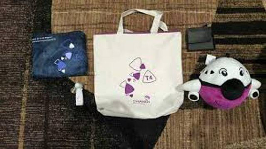 Hành khách trên chuyến bay CX659 được tặng hoa và quà khi rời khỏi máy bay. Ảnh: CNA