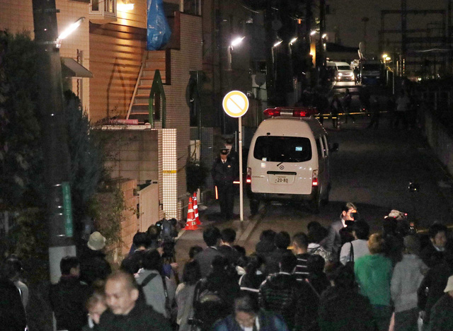 Đám đông tập trung bên ngoài căn hộ của Shiraishi ở Zama (Ảnh: Kyodo)
