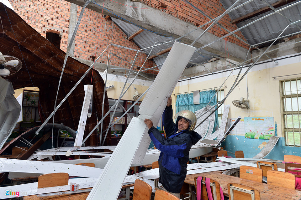 Trong khi đó, nóc nhà của ngôi trường Tiểu học Phước Thịnh bị bão thổi tốc mái.