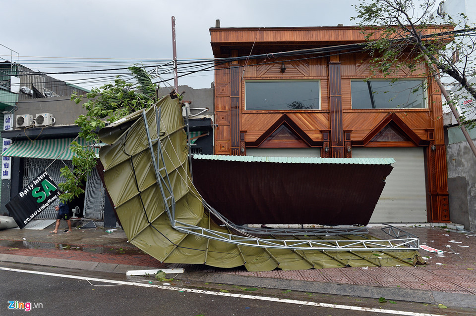 Với sức gió trên 100 km/h, nhiều cây đổ, mái tôn bị bay ra giữa đường, khiến giao thông đi lại khó khăn. Đến 10h cùng ngày, nhiều ôtô từ ngoài không thể vào trung tâm thành phố vì nước ngập và cây đổ chắn ngang đường.