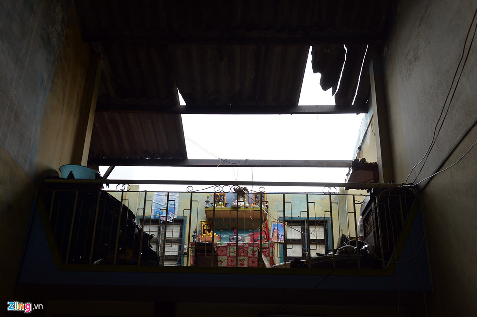Nhà bà Lê Thị Hồng ở số 784 Lê Hồng Phong bị tốc mái lợp, dù căn nhà nằm ngay trung tâm thành phố, cách xa biển.
