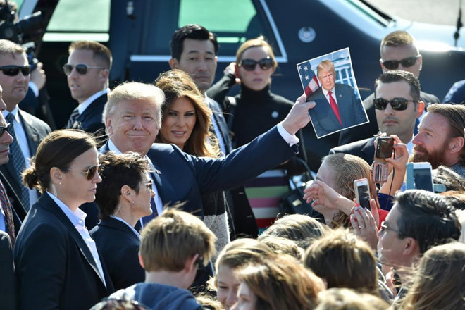 Tổng thống Trump và Đệ nhất phu nhân Melania tại căn cứ không quân Yokota, Nhật Bản. Ảnh: Reuter