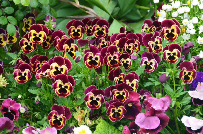 Mỗi loài hoa trong vườn nhà chị Luyến có nhiều giống và màu khác nhau, nhiều nhất là hoa hồng, kế đến là thược dược, hoa cúc, pansy, hoa thủy tiên, hoa ly...