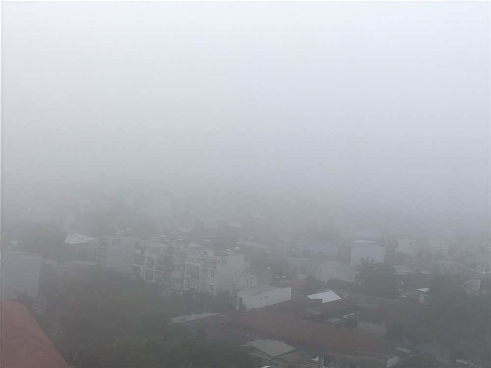 Nhiều tòa nhà gần như “biến mất” trong màn sương trắng. Ảnh: M.Q