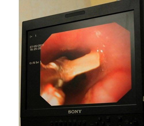 Ca mổ diễn ra khoảng 30 phút, không có biến chứng nguy hiểm nào xảy ra và dị vật được lấy ra khỏi thực quản của người bệnh là một mảnh xương gà hình chữ L (cắm sâu vào thực quản và gây 2 vết loét đối xứng nhau, trong đó một vết loét sâu qua lớp cơ thực quản nhưng hiện tại chưa gây thủng thực quản. Bệnh nhân được nuôi xông hoàn toàn tránh vết loét nặng thêm và gây các biến chứng tiếp theo.