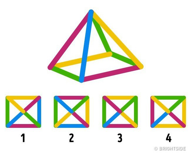 Nhìn từ trên xuống, đâu mới là hình ảnh của hình chóp này?
