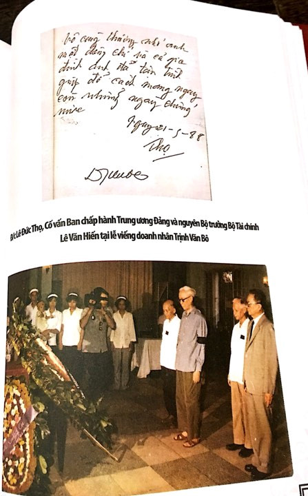 Nguyên Trưởng ban Tổ chức T.Ư Lê Đức Thọ đến viếng lễ tang nhà tư sản dân tộc yêu nước Trịnh Văn Bô và viết trong sổ tang