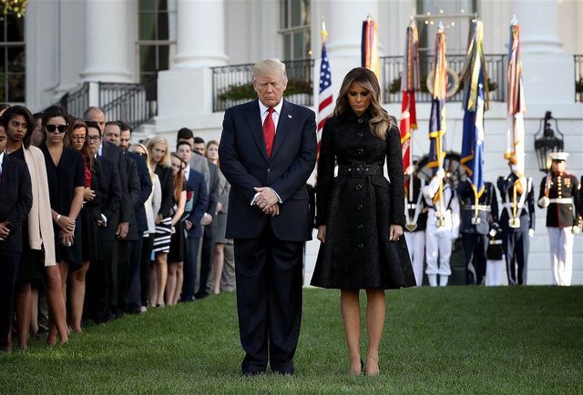 Tổng thống Trump và phu nhân tưởng niệm các nạn nhân thiệt mạng trong vụ tấn công khủng bố ngày 11/9/2001 tại Nhà Trắng. (Ảnh: Getty)