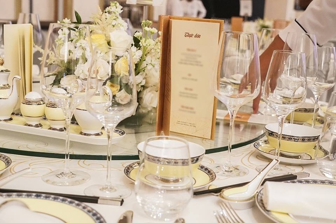 Ở bàn dành cho các vị quan khách khác, các đồ dùng cũng được thiết kế sang trọng.