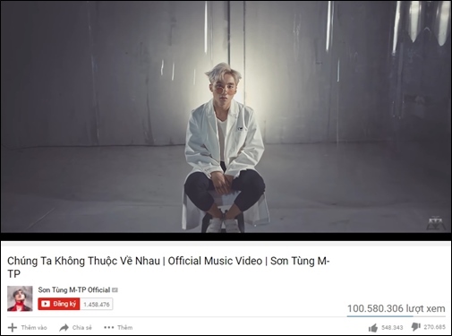 Với chính sách Youtube áp dụng tại Việt Nam được tính 0,3 USD cho mỗi 1000 lượt view và tại nước ngoài giá trị 1000 lượt view là 0,7 – 1USD, th́ có thể thấy “thỏi nam châm” mang tên Sơn Tùng M – TP đă và đang đang "hái ra tiền" bởi những MV với lượt view khủng. Danh xưng “ông hoàng view” không có ai xứng đáng hơn ngoài anh cho đến thời điểm này.