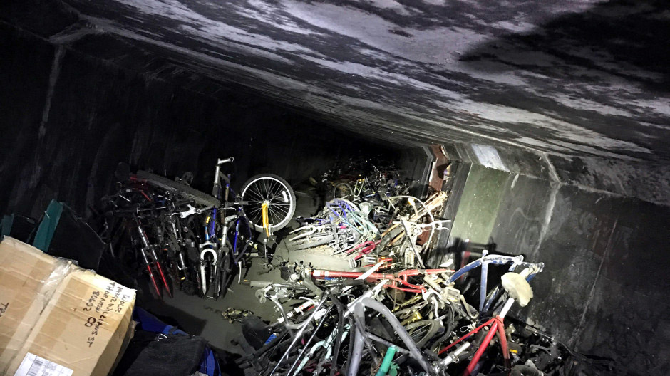 Từ lỗ chui vào nhỏ, đường hầm được xây dựng rộng ra, đủ cao cho một người đứng thẳng lưng ở bên trong. Điều kỳ lạ nhất về hầm này là bên trong đường hầm tối tăm, cảnh sát khám phá khoảng 1,000 chiếc xe đạp được cất dấu. Với sự tìm thấy này, cảnh sát nghi ngờ đường hầm được kiểm soát bởi một nhóm chuyên ăn cắp xe đạp.