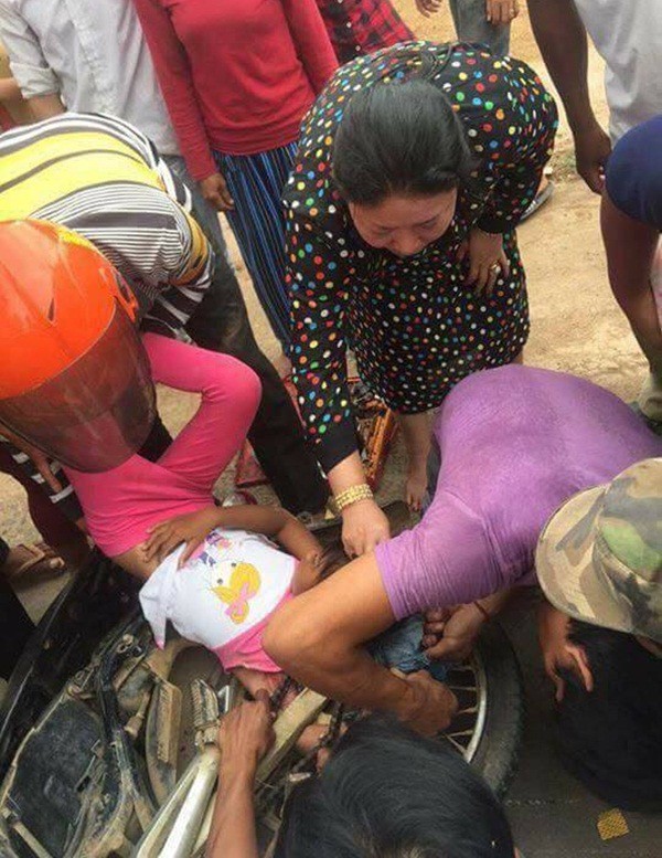 Mới đây trên mạng Xh đồng loạt chia sẻ nhau những hình ảnh của 1 bé gái gặp nạn khi đi xe máy. Theo đó bé gái này đã bị bánh sau quấn chặt do trước đó mái tóc qua dài bị kẹt vào bánh xe. Đây cũng chính là lời cảnh tỉnh dành cho người lớn trong việc đảm bảo an toàn cho con trẻ.Trong bức hình là một bé gái chưa đến 10 tuổi bị kẹt chặt trong bánh xe máy, không thể cử động đang hoảng sợ và đau đớn. Rất nhiều người xung quanh đang tìm cách đưa em ra ngoài.