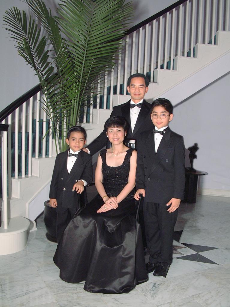 Bà Loan chụp hình cùng chồng và hai cậu con trai tại nhà riêng.