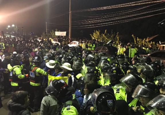 Thế là cuộc đụng độ với cảnh sát với người dân diễn ra khi họ chặn các phương tiện vào nơi triển khai hệ thống phòng thủ THAAD.