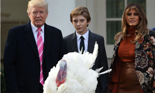 Vợ chồng Tổng thống Trump và con trai trong lễ xá tội gà tây ở Nhà Trắng tuần trước.