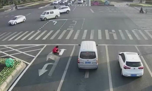 Trong video do camera giao thông ghi lại, vào lúc 15h ngày 27/11, Cai vẽ thêm mũi tên chỉ dẫn đi thẳng trên làn đường hướng dẫn các phương tiện rẽ trái. Theo Cai, hai làn đi thẳng bên cạnh chưa phát huy hiệu quả và khiến tình trạng tắc nghẽn hay xảy ra.