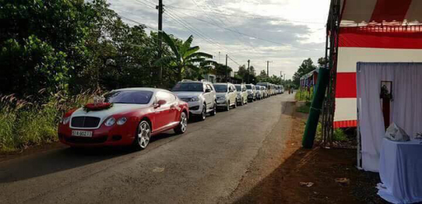 Dàn xe đón dâu sang trọng, trong đó có cả Bentley.