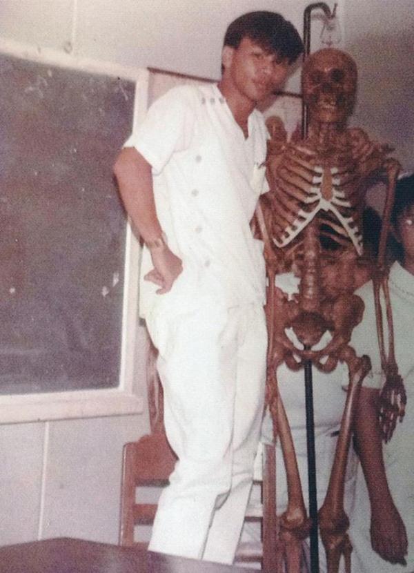 Chua chụp ảnh bên bộ xương người. Ảnh: T.S