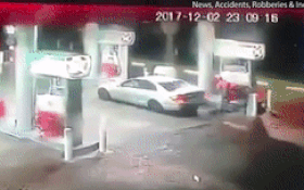Những hình ảnh từ camera an ninh ghi nhận lại cho thấy, trước khi vụ tai nạn xảy ra, một nhân viên của trạm xăng vẫn còn đang đứng cạnh chiếc Mercedes để đổ xăng cho xe. Rất may, khi chiếc xe tải lao đến, người này đã kịp bỏ chạy thoát thân, bảo toàn được tính mạng.