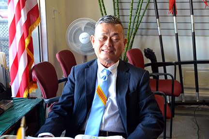 Ký giả Du Miên đang tiếp chuyện với phóng viên Viễn Đông. (Thanh Phong/ Viễn Đông)