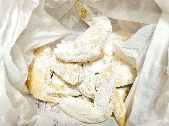 - Bước 5: Lấy cánh gà ra cho nguội bớt, đổ bột chiên giòn vào túi ni lông sau đó cho cánh gà vào túi, túm chặt xóc đều cho bột bám đều cánh gà.