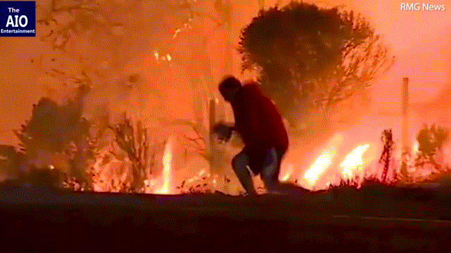 Một đoạn phim mới đây đã được ghi lại giữa hỏa hoạn, khi một người phát hiện ra thanh niên nọ đang lái xe thì tạt vào lề đường và vội vã lao về phía một bụi rậm. Không rõ nhìn thấy gì mà anh ta có vẻ rất kích động và hoảng sợ, đồng thời liên tục nhảy lên vì lo lắng.