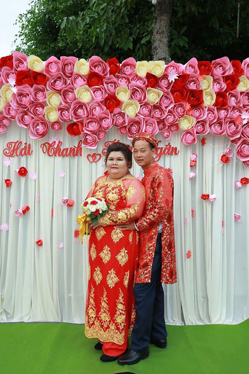 Cách đây gần 6 tháng, Phạm Ngọc Kim Ngân, 24 tuổi, lên xe hoa với chàng trai cùng khu phố hơn 11 tuổi ở thành phố Thủ Dầu Một, Đỗ Hải Thanh. Đám cưới của đôi trẻ gây chú ý khi cô dâu có thân hình mũm mĩm, sánh đôi chú rể cao, gầy. Thời điểm đó, Ngân nặng 110 kg, còn chồng cô chỉ 65 kg.