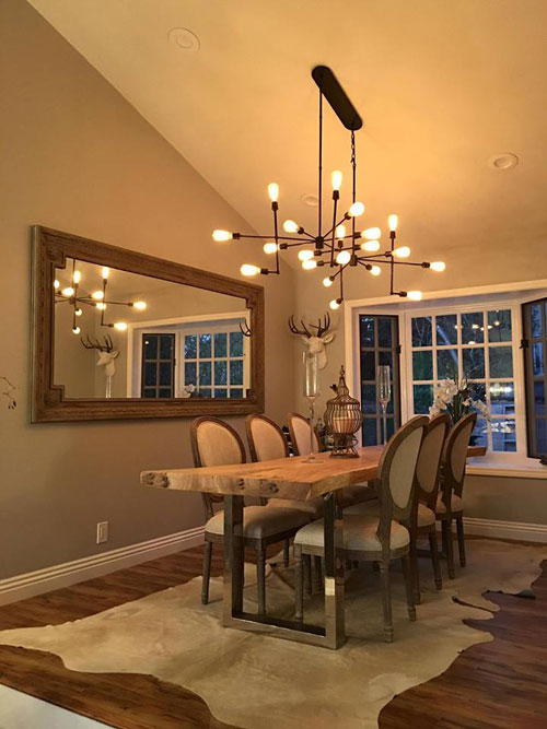 Bên trong căn biệt thự, đồ đạc được MC Nguyễn Cao Kỳ Duyên bài trí tinh tế theo phong cách phương Tây. Từ bộ bàn ăn sang trọng với chùm đèn màu ấm cúng trong phòng ăn đến bộ ghế sofa đắt tiền đặt ở phòng khách…