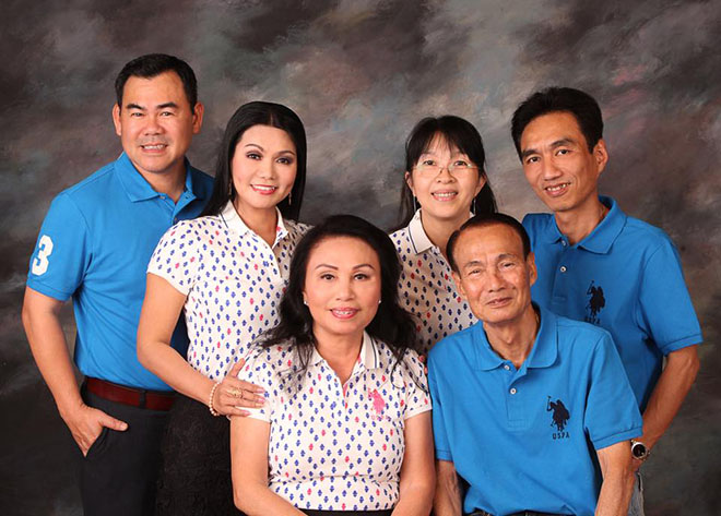 Vợ chồng Ngọc Huyền bên cạnh người thân.