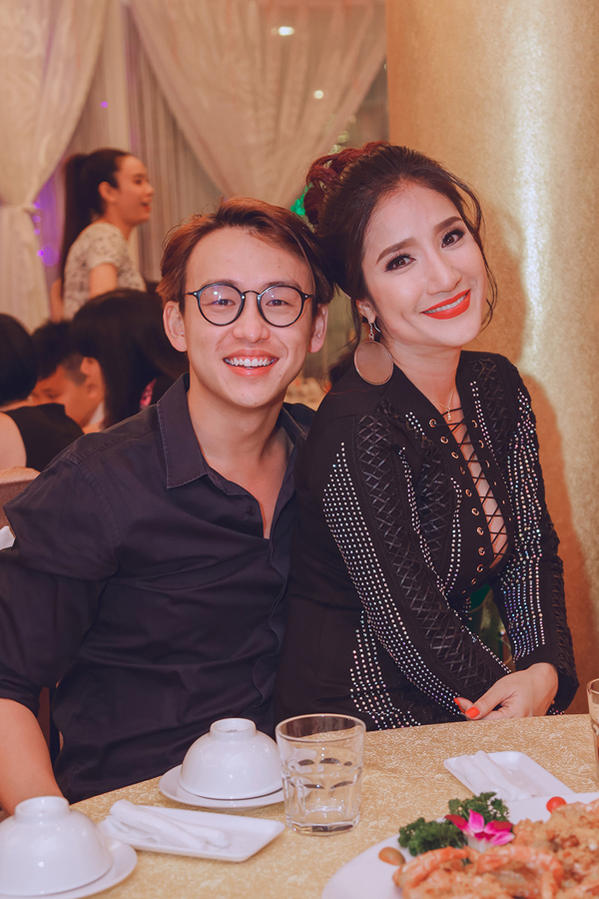 Nữ nghệ sĩ thân mật ngồi trong lòng 'đàn em' Quang Bảo.
