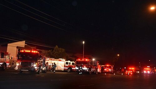 Hơn 10 xe cứu hỏa và nhiều xe cảnh sát đậu dọc theo đại lộ Bolsa để chữa cháy. (Thanh Phong/ Viễn Đông)