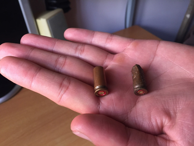 Hai vỏ đạn mà chị Trang nhặt được sau vụ nổ súng